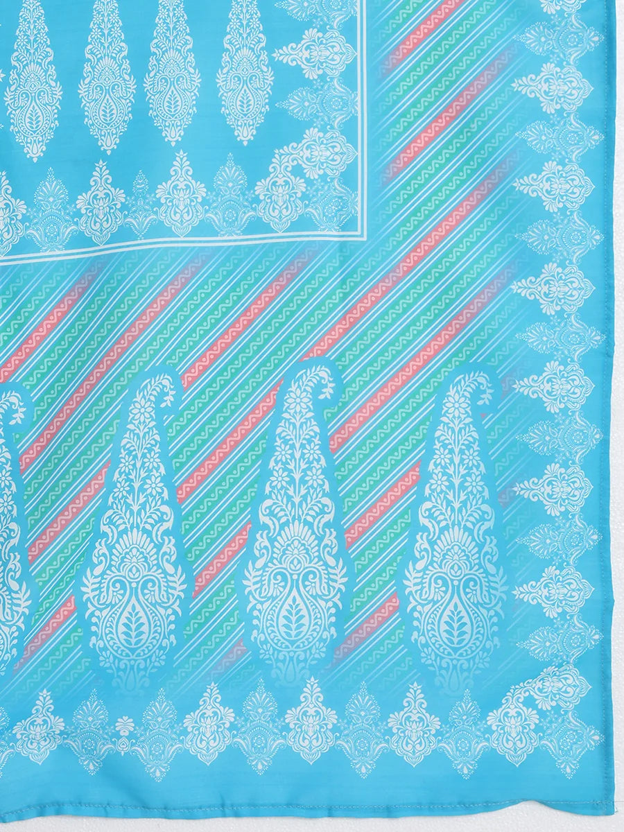 Dupatta pattern – Ethnic printed pattern (blue base with white & pink motifs)