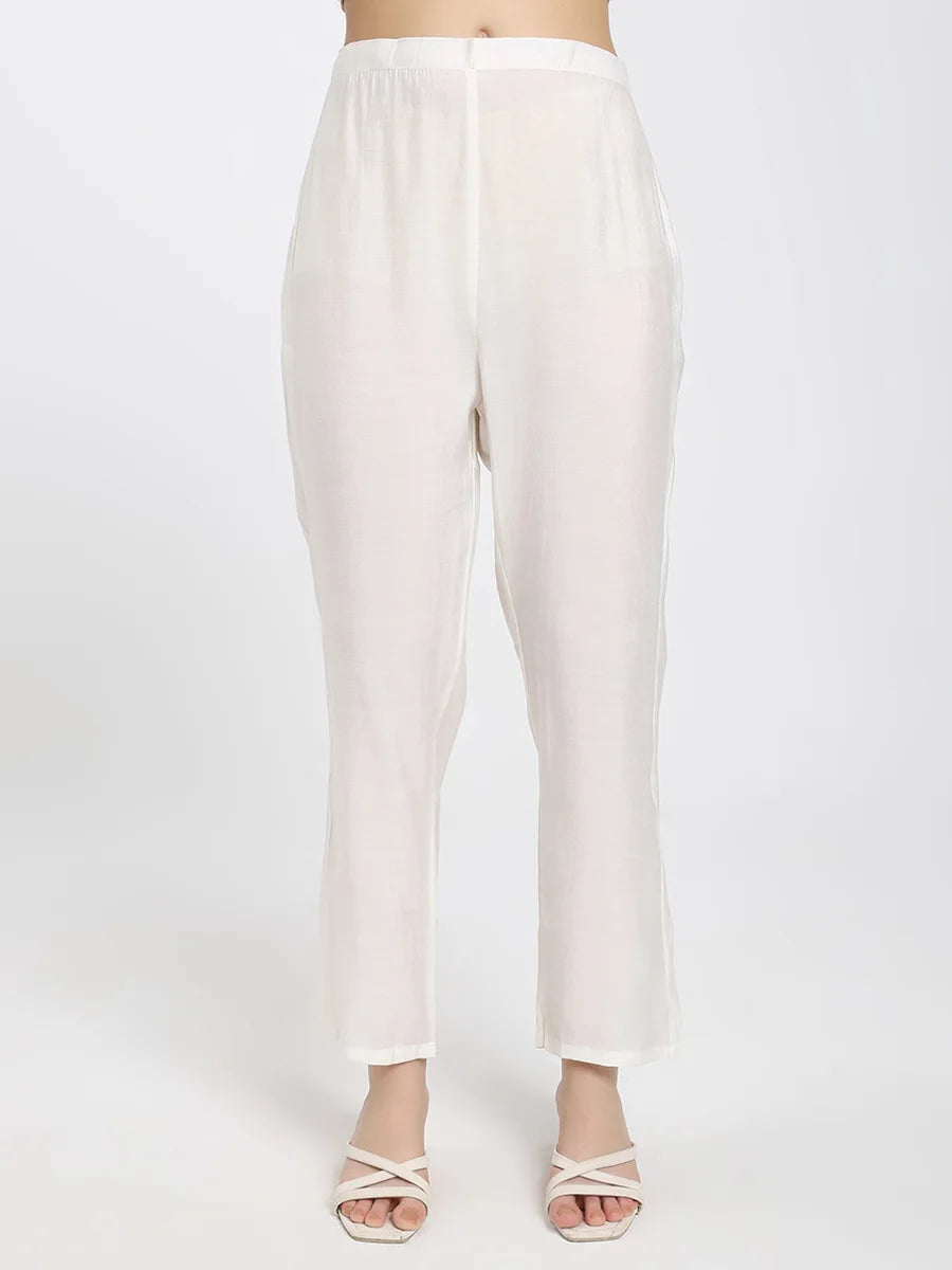 Pair this elegant white kurta set with silver Jhumki’s or pearl earrings for a touch of sophistication. Opt for white or nude strappy sandals or traditional jutties to keep the look graceful. A sleek clutch in pastel or metallic shades will complement the vibrant blue dupatta without overpowering it.