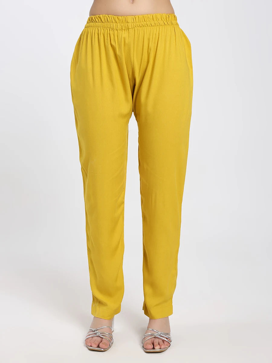 Pair this vibrant mustard yellow kurta set with silver or kundan Jhumki’s to highlight its festive charm. Opt for metallic heels or