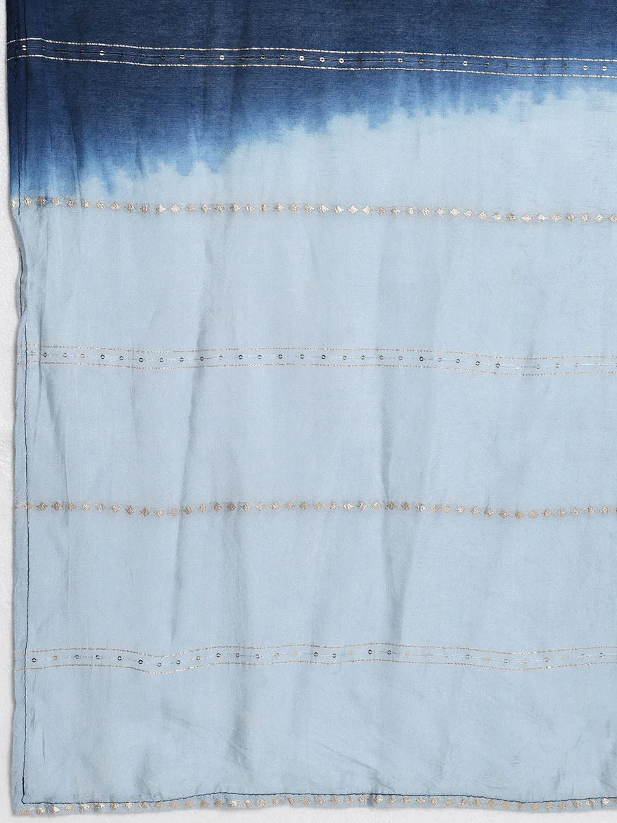 Navy Blue Embroidered Kurta Set with Light Blue Dupatta