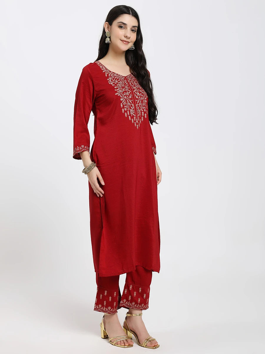 Elegant Red Embroidered Kurta Set with Dupatta – A Perfect Blend of Tradition & Style