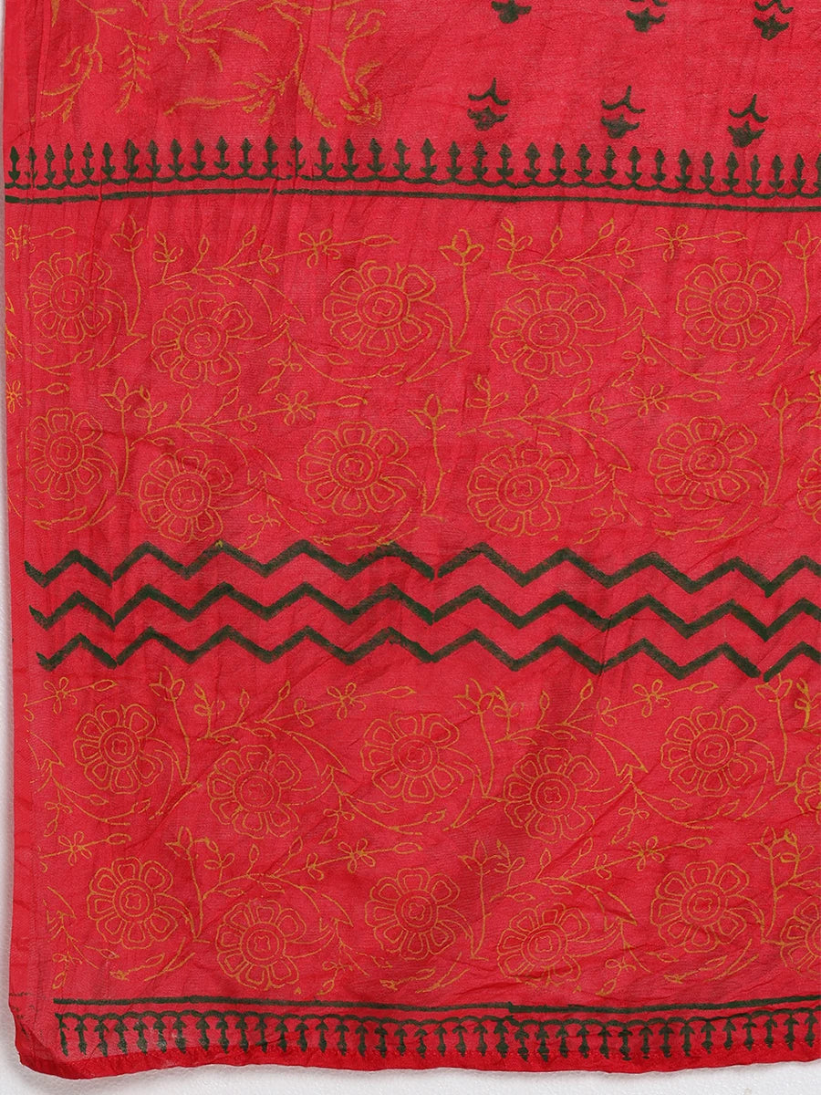Color – Mustard Yellow (Kurta & Bottom), Red with multicolor motifs (Dupatta)