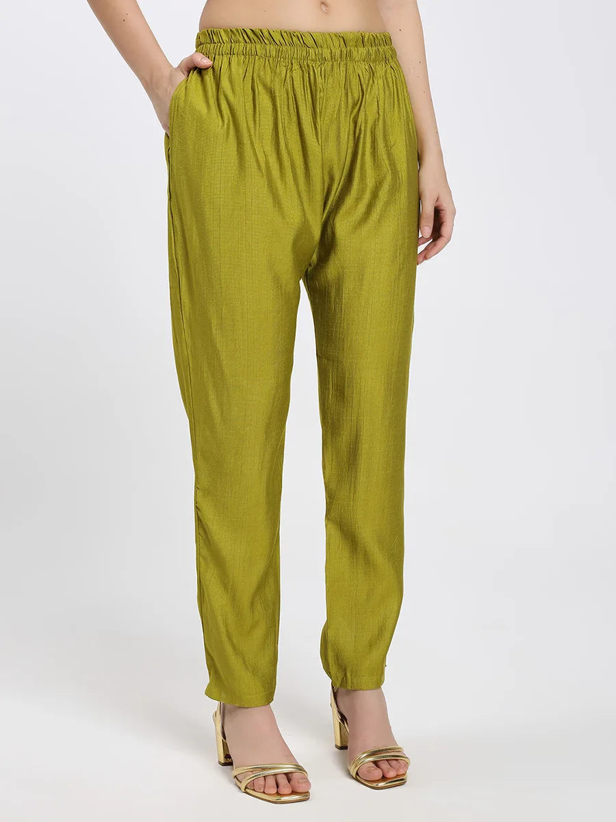 Bottom fabric – Silk blend (solid green, straight trousers)