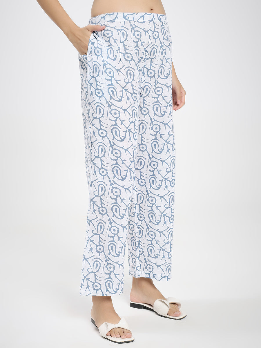 Refresh your ethnic wardrobe with this elegant blue & white suit set. The straight cotton kurta is adorned with ethnic floral block-inspired prints, paired with coordinated printed straight pants for a modern touch. A flowy printed dupatta with geometric motifs completes this stylish yet comfortable ensemble.